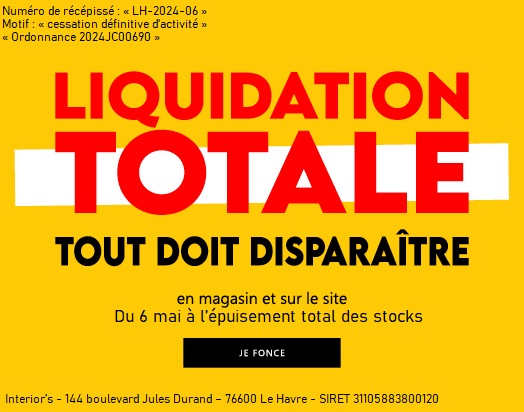 Par jugement du Tribunal du Commerce du Havre du 24 mai 2024, il a été mis fin à la période de poursuite d'activité de la société Interior's dans le cadre de sa liquidation judiciaire.
