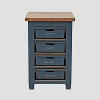 Pour une cuisine sobre et authentique,faites le choix de nos centres de pièce fait en bois massif et recouvert d'une patine originale bleutée, grège ou encore noire.